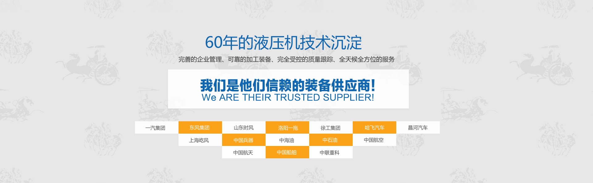徐州壓力機械有限公司徐州壓力機械有限公司(徐州鍛壓設備制造廠),液壓機行業(yè)簡稱“徐鍛”,座落在素有“五省通衢”之稱的徐州,毗鄰楚王陵兵馬俑公園。始建于1958年,2008年與代號為九三五二廠的軍工企業(yè)江蘇永康機械有限公司實施戰(zhàn)略重組改制成股份制企業(yè),改制后的“徐鍛”秉承老國企“拼搏、務實、創(chuàng)新”的優(yōu)良傳統(tǒng)、汲取軍工企業(yè)